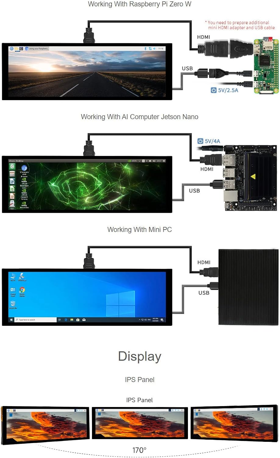 - Supports popular mini PC such as Raspberry Pi, Jetson Nano